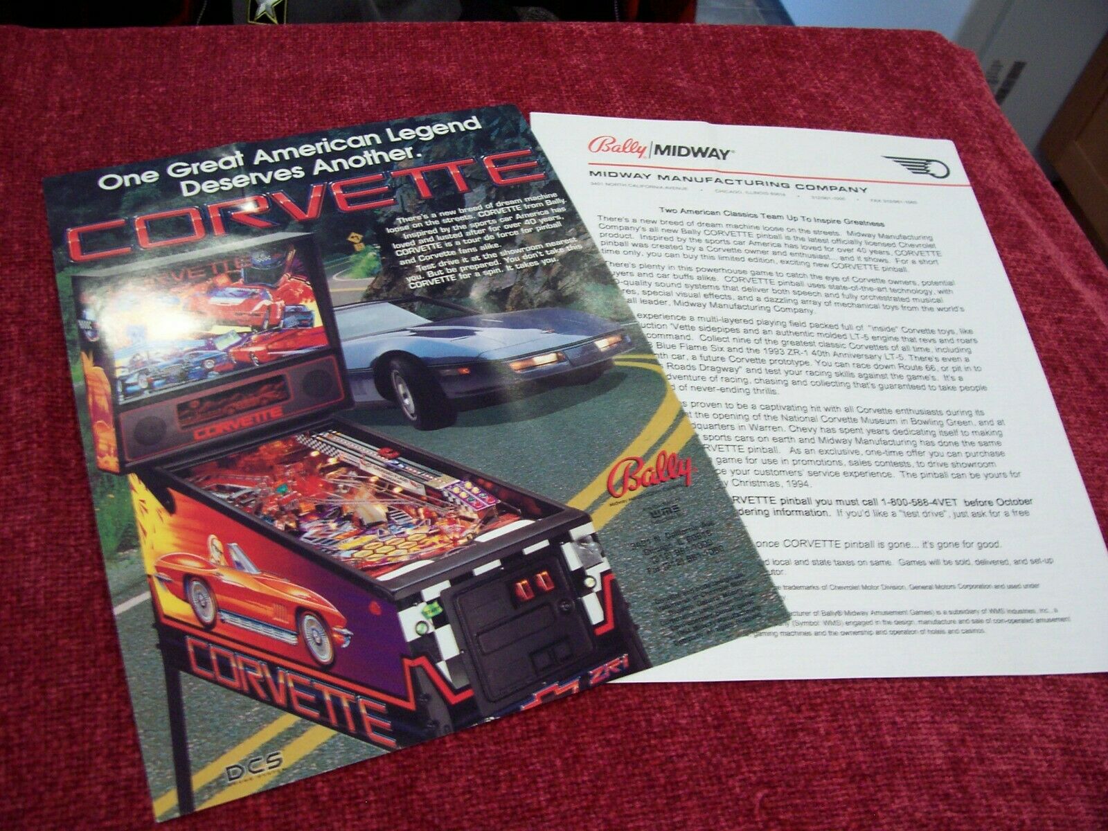 CHEVROLET--1994 CORVETTE Pin Ball Machine by BALLY order info--N.O.S.