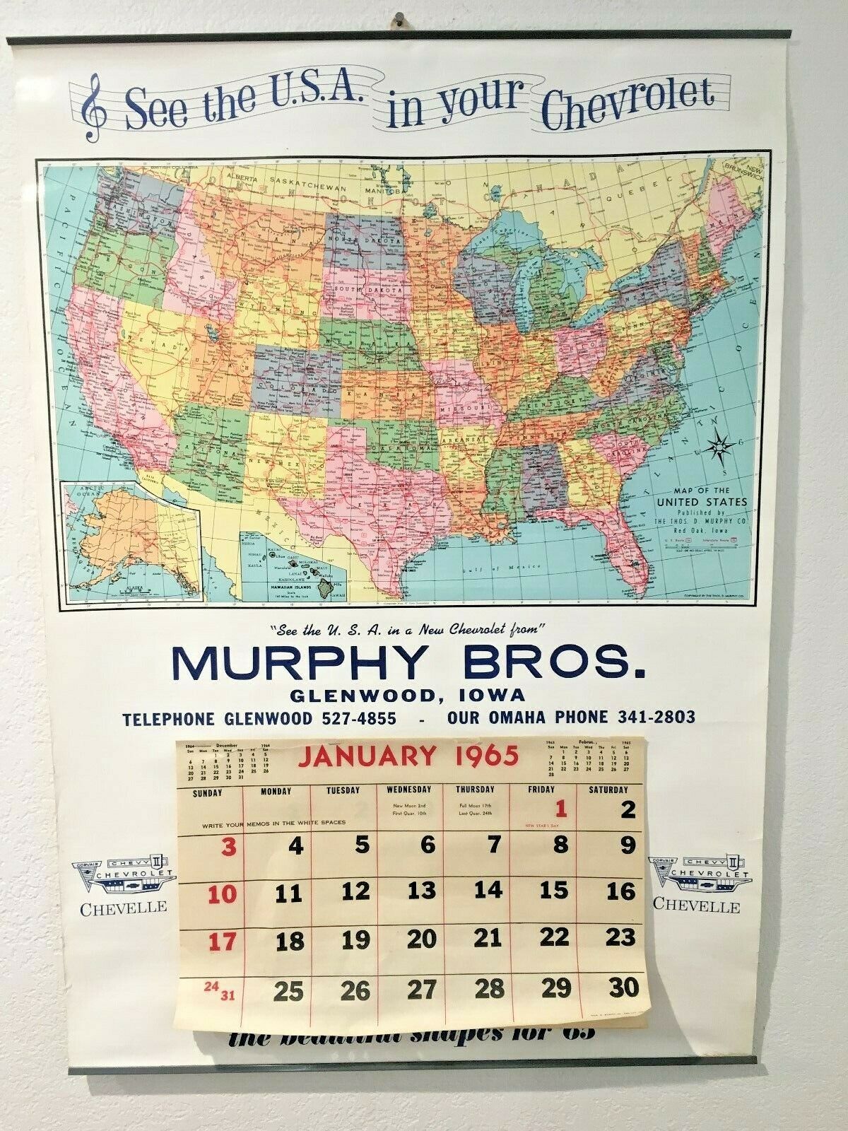 1965 Chevrolet Calendar.. Murphy Bros. Glenwood Iowa