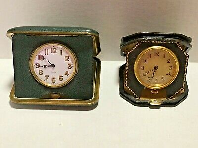 2 Antique Travel Clocks In Leather Cases Junghans Alarm & Swiss 8 Day