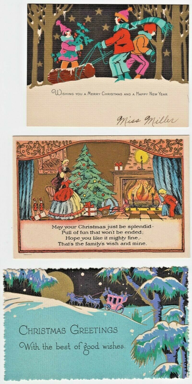 Title (ebay affiliate link): Vintage Lot of 3 Flat Single Layer Christmas Cards w Gold Gilding
