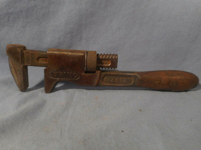 vintage TRIMO Railroad ? 12" ADJUSTABLE WRENCH antique tool ROXBURY MASS