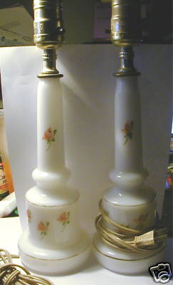 Old PAIR Hand Painted Milk Glass VANITY TABLE LAMPS