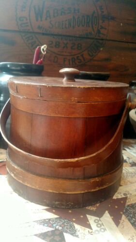 Title (ebay affiliate link): Vintage Antique Primitive Wooden Firkin Sugar Bucket w/handle and Lid