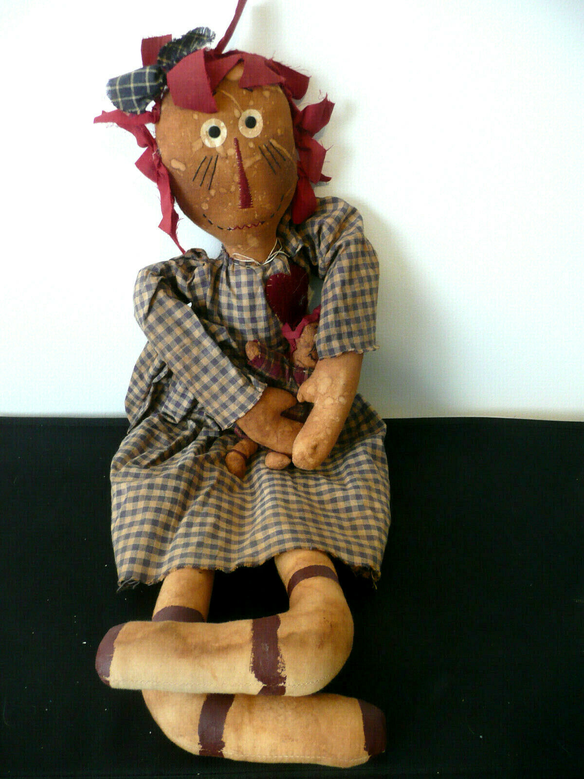 Title (ebay affiliate link): 26" Primitive Country Folk Art Plush RAGGEDY ANN DOLL
