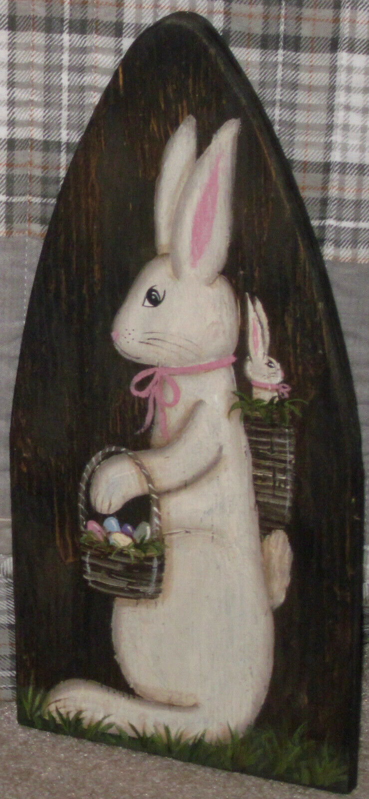 *~*PRIMITIVE*~* HP FOLK ART BUNNY * BASKET OF EGGS * BABY BUNNY *~* STRETCHER