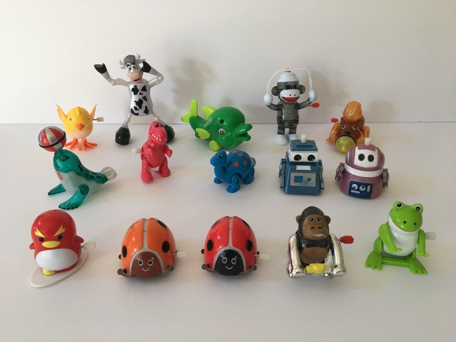 Lot 15 WIND UP TOYS ALL WORKING Penguin, Squirrel, Monkey, Cow, Ladybugs, Robots