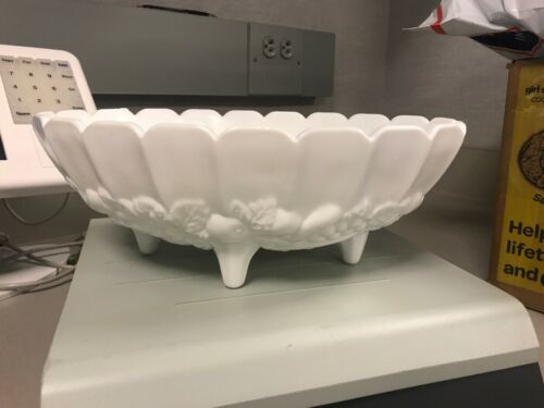 Title (ebay affiliate link): VINTAGE HEAVY MILK GLASS QUAD FOOTED OVAL FRUIT BOWL, GORGEOUS!