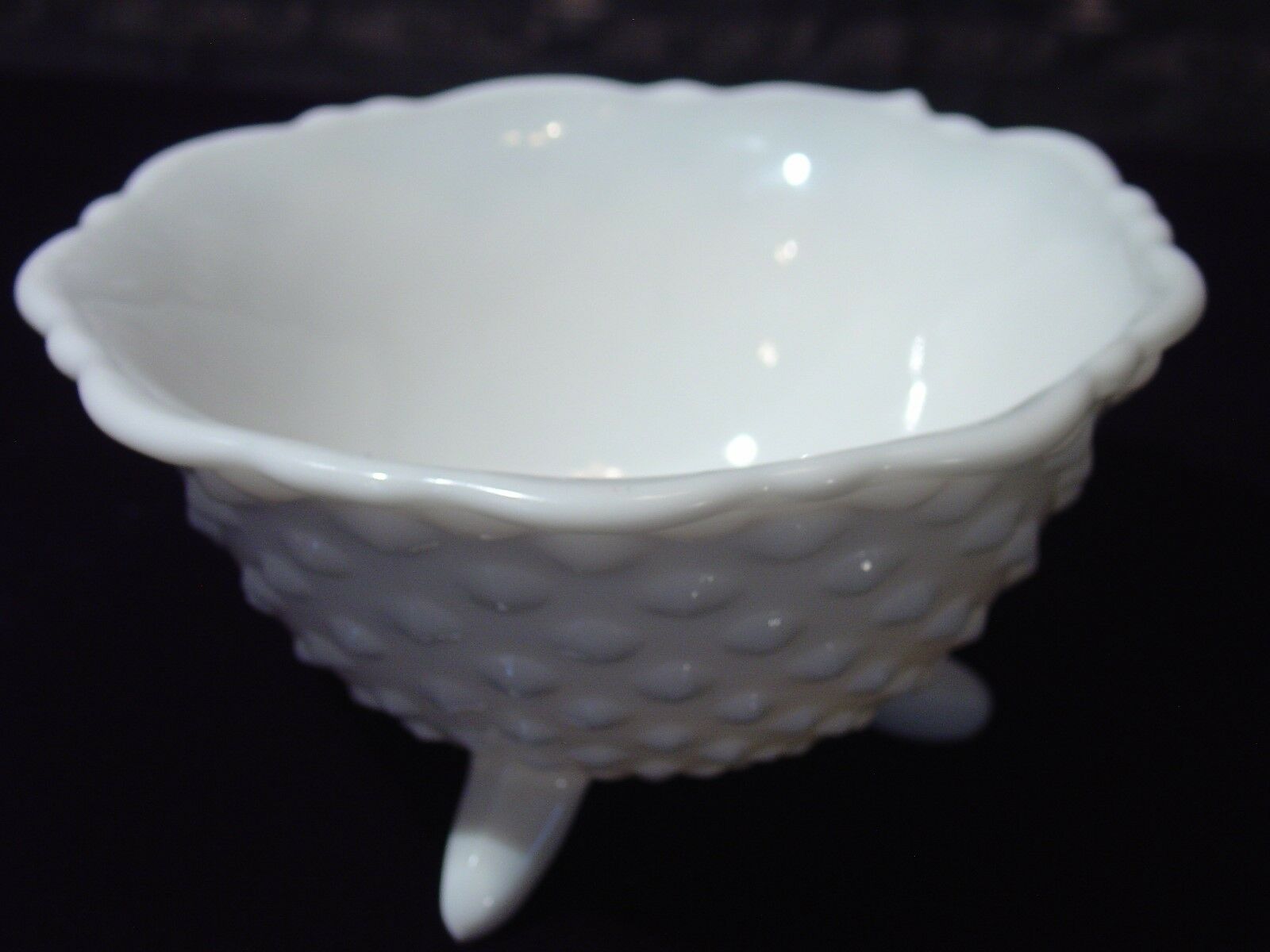 Hobnail White Milk Glass 3 Footed Candy Dish / Bowl - 3 inches tall