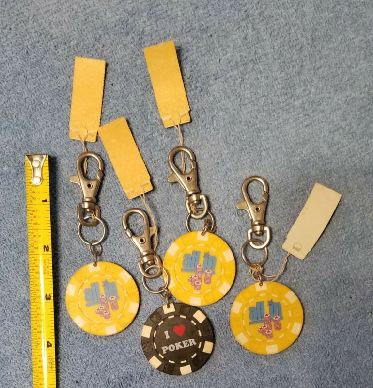 Title (ebay affiliate link): Vintage Poker chip key rings Lot of 4 All In & I Love Poker Lucky Key Ring