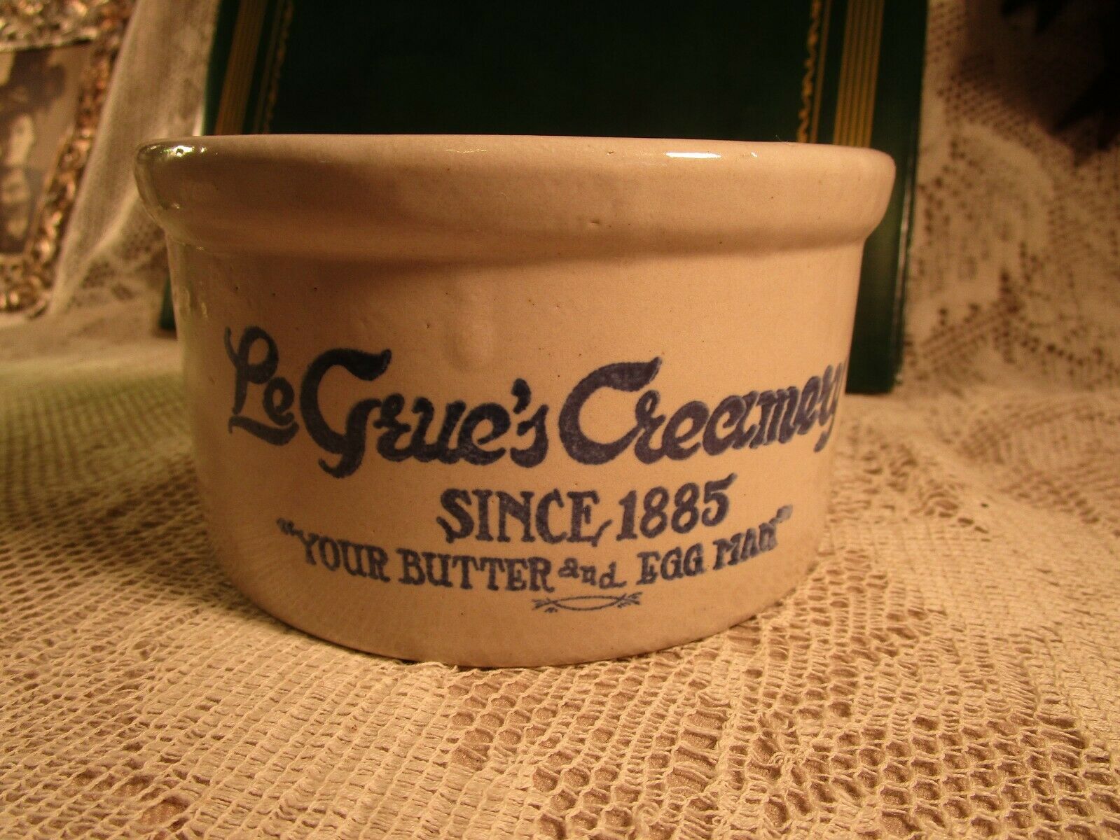 Title (ebay affiliate link): VINTAGE LE GRUE''S CREAMERY BUTTER CROCK-ADVERTISING