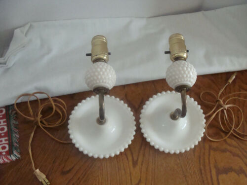 Title (ebay affiliate link): VTG PAIR of Working White Milk Glass Hobnail Boudoir Parlor Wall Sconce Lamps