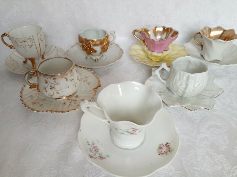 Title (ebay affiliate link): (7) VINTAGE ANTIQUE MINI CUP & SAUCER SETS BONE CHINA MIX AND MATCH #4