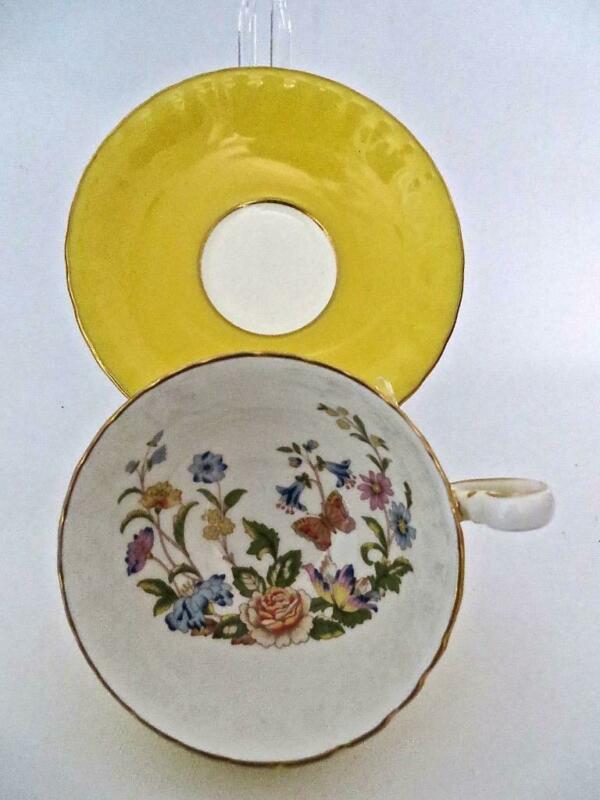 Vintage Aynsley Canary Yellow Cup & Saucer with Butterfly Interior No Reserve