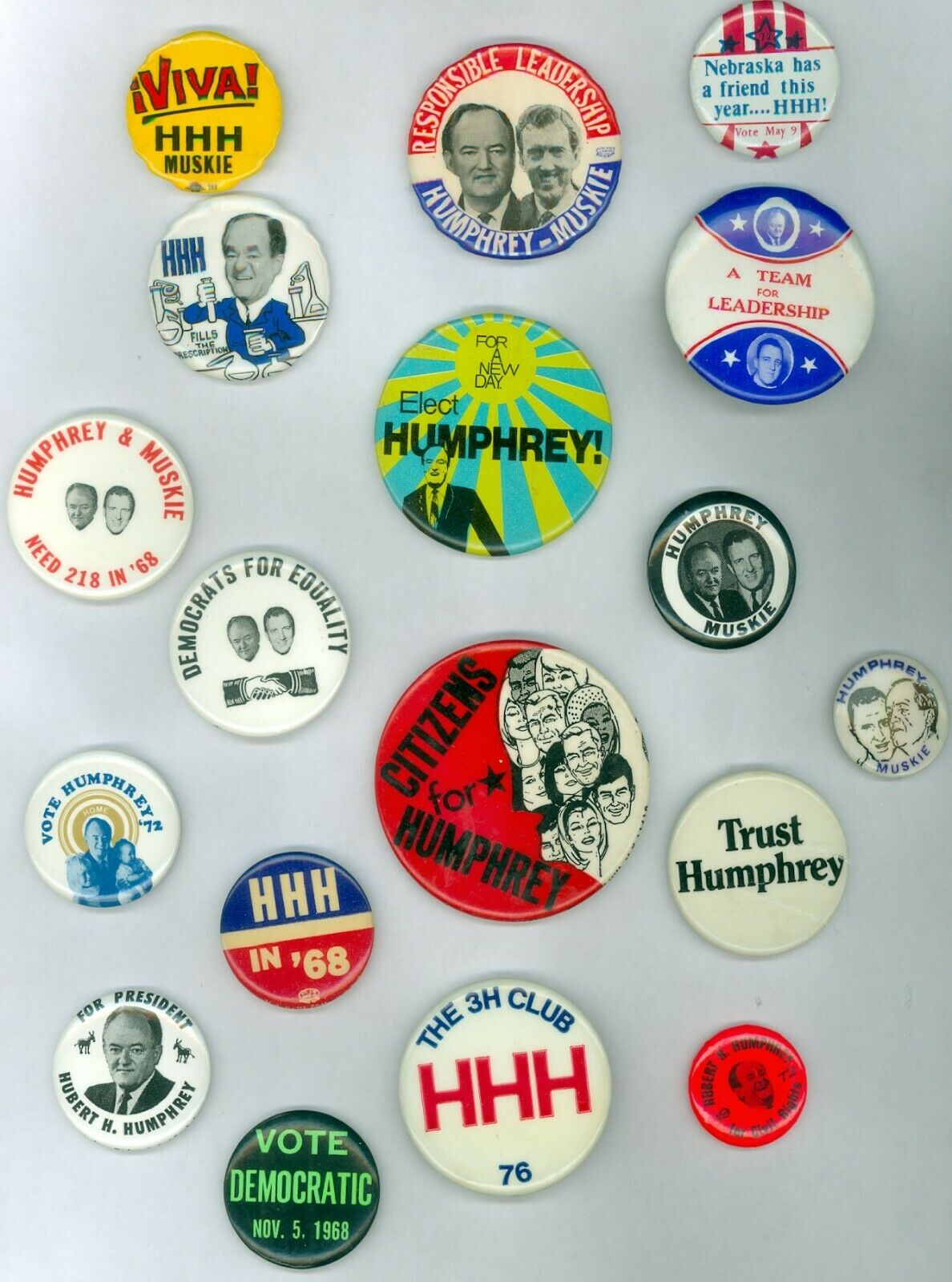 Title (ebay affiliate link): 18 Vintage 1968-76 President Hubert Humphrey Political Campaign Pinback Buttons