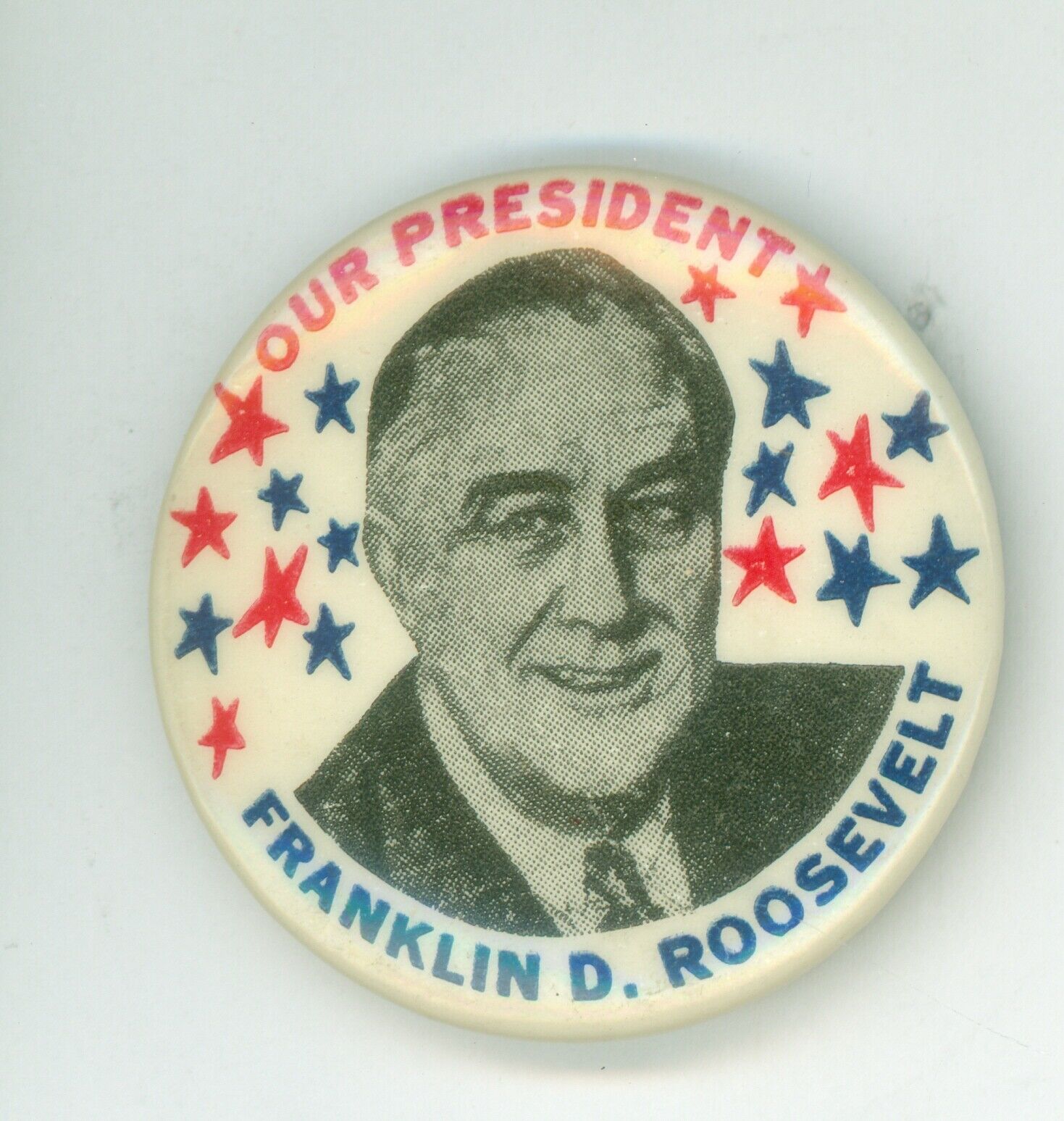 Vintage 1940s President Franklin Roosevelt Political Camp Pinback Button Stars