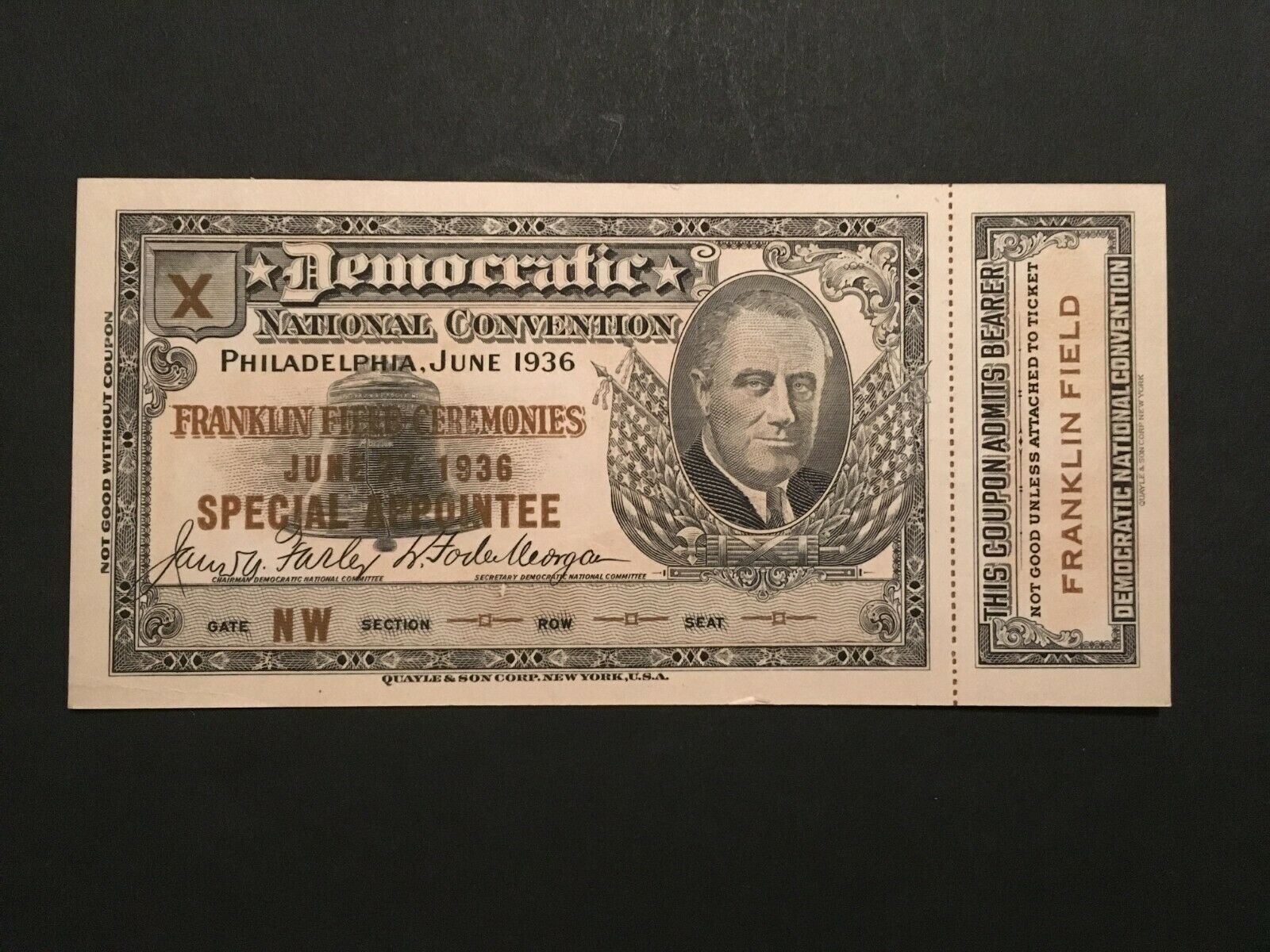 Title (ebay affiliate link): 1936, Franklin Delano Roosevelt FDR, Democratic National Convention ticket, June