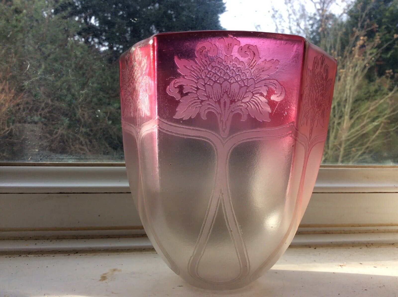 Nouveau Cranberry glass lampshade