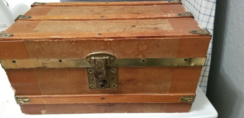 Title (ebay affiliate link): Antique doll trunk filled with vintage items clothes