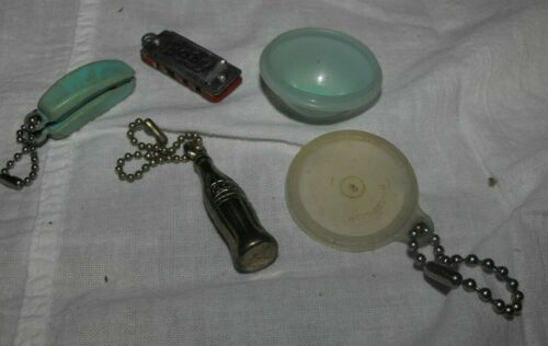 4 Vintage Key Chains Tupperware Bowl Baby Harmonica Gold Coke Bottle Phone