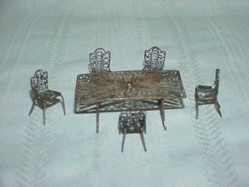 Title (ebay affiliate link): LOT Vintage Antique Metal Table + Chairs Dollhouse Furniture - Small Scale