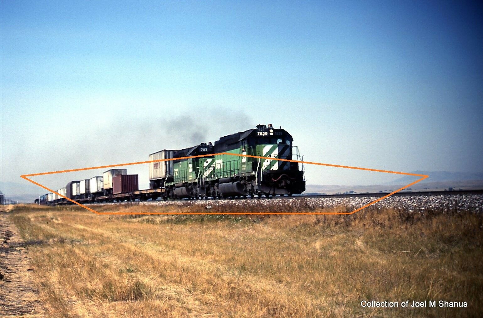 BN 7829 ex-C&S 959 SD40-2 & 7113 Big Timber MT. Septe Original Kodachrome Slide