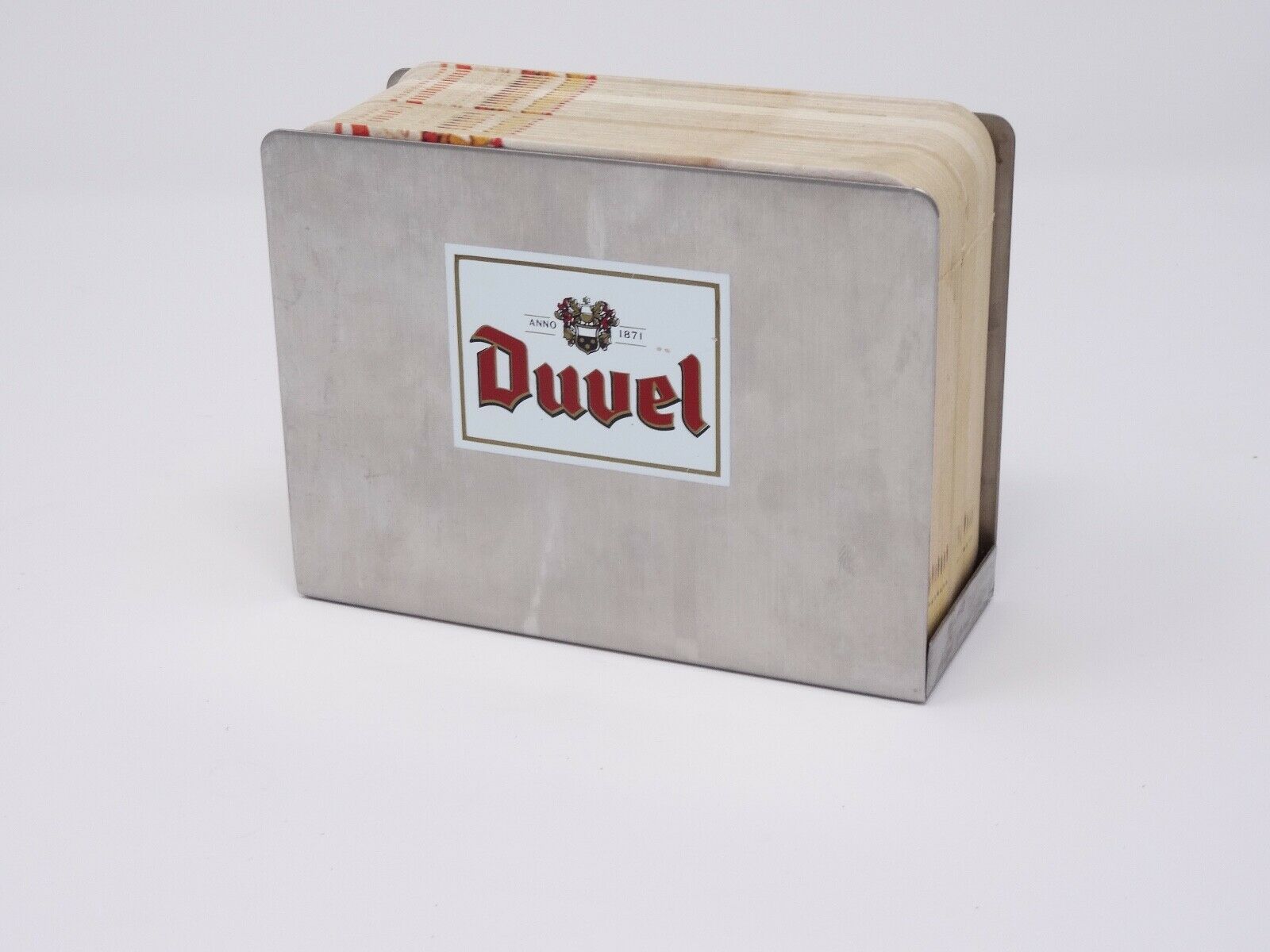 Title (ebay affiliate link): Duvel Coasters and Stainless Steel Holder for on top of Bar