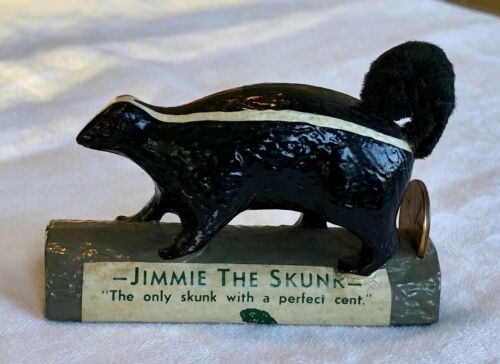 Title (ebay affiliate link): ANTIQUE CAST IRON SKUNK w/ 1941 WHEAT PENNY PAPERWEIGHT~ORIGINAL PAINT & TAIL