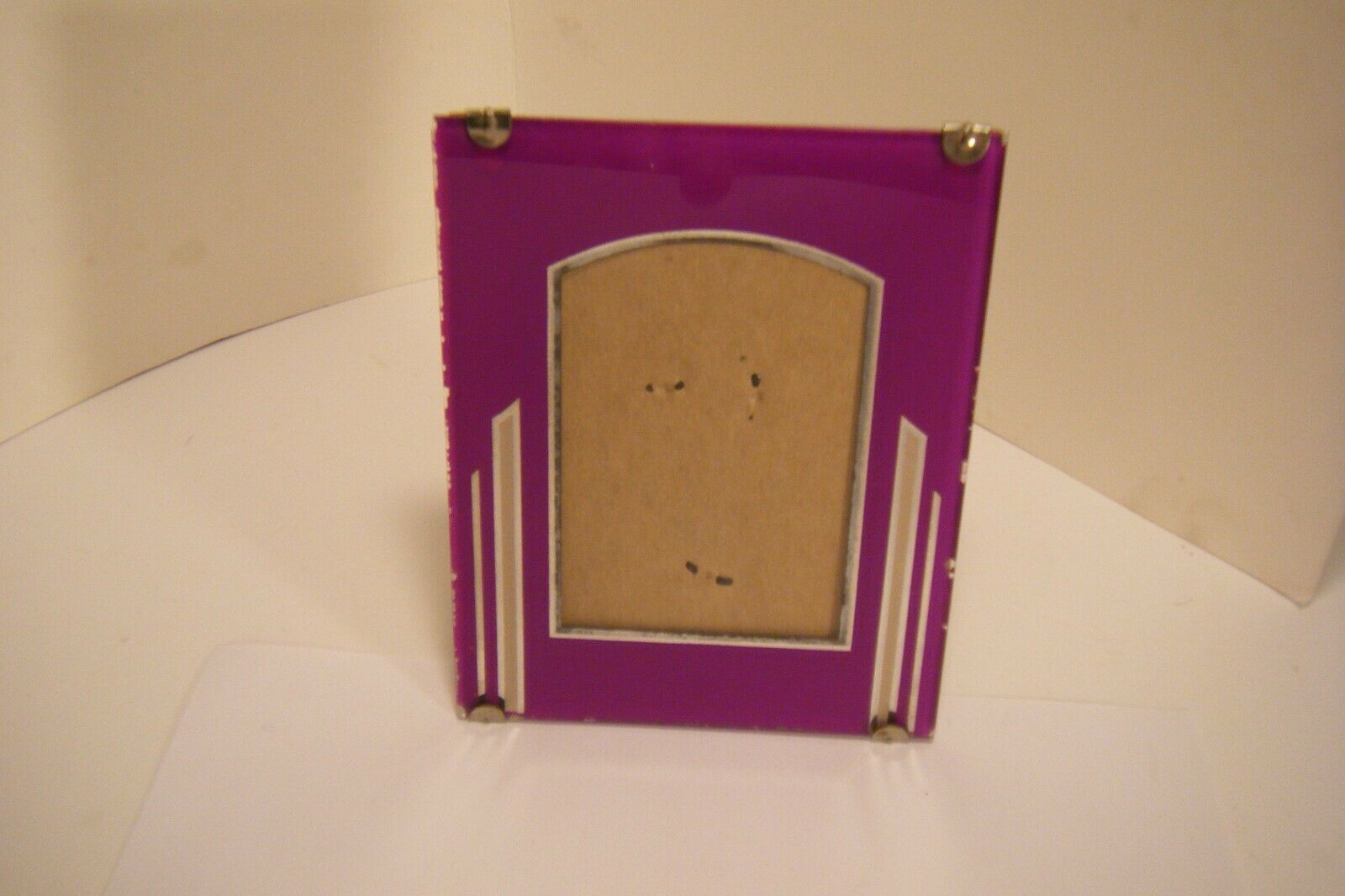 VTG ART DECO SMALL PURPLE VIOLET REVERSE PAINTED GLASS EASEL PICTURE FRAME 5X4"