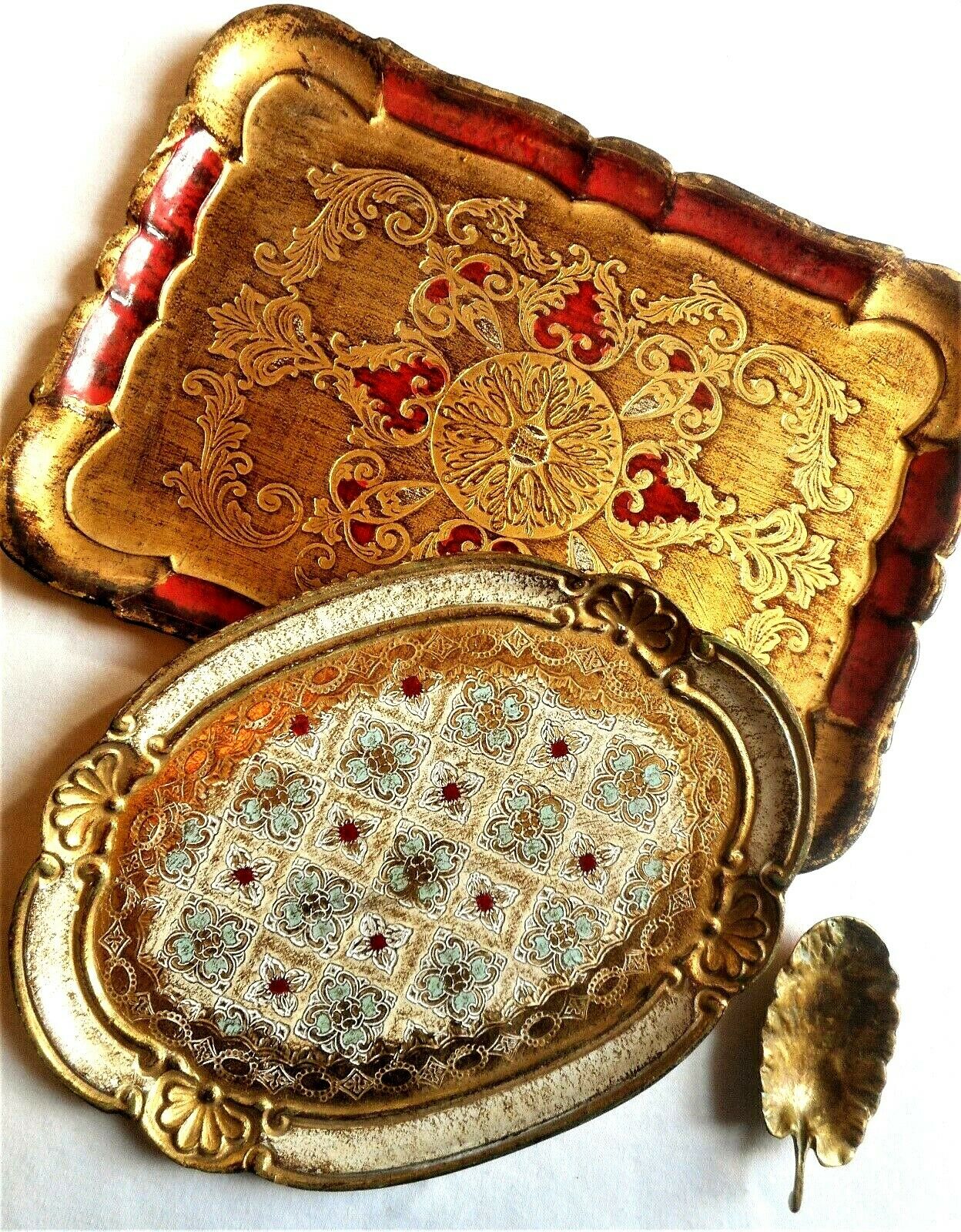 Title (ebay affiliate link): BEAUTIFUL! Vintage Italian Florentine Tole Toleware Gilt Serving Vanity TRAY LOT