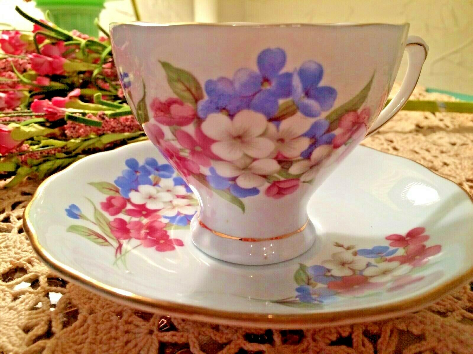 Tea Cup and Saucer Colclough England Forget Me Nots Bone China Coldough ruffle