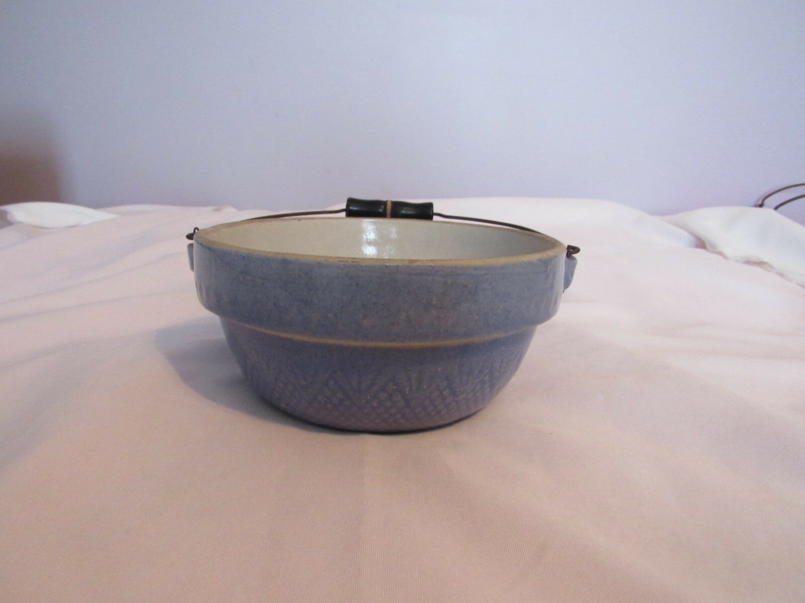 Antique Roseville Venetian Blue Crock Bowl with Bale Wire Handle