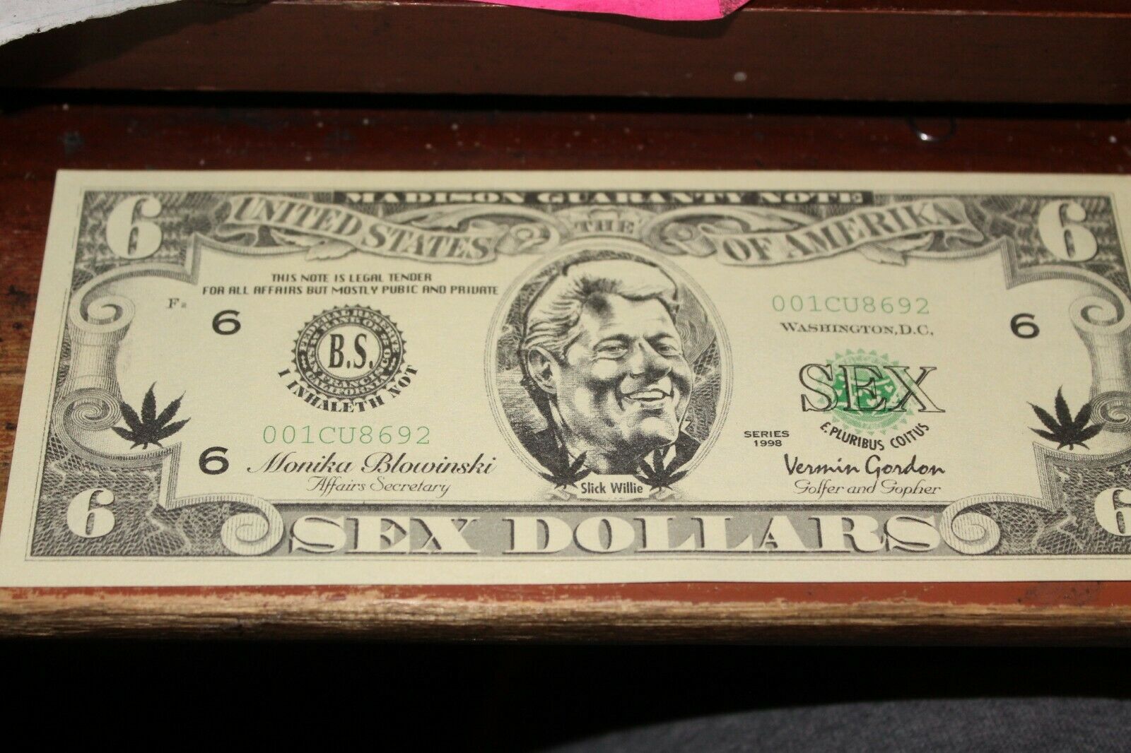 Bill Clinton Sex dollar Monika Blowinski novelty bill, not valid to use to pay