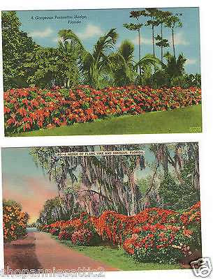 FLORIDA postcard 1940''s LOT OF 2 POINSETTA HEDGE OF FLAME flowers plant