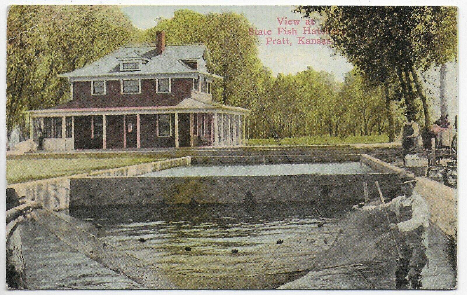 Title (ebay affiliate link): (3479) Old Postcard Men Net Fishing at The State Fish Hatchery in Pratt Kansas