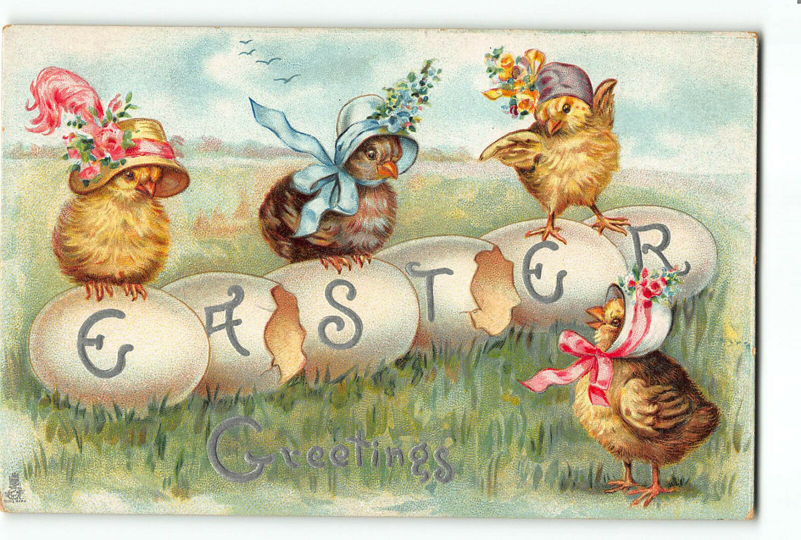 Title (ebay affiliate link): Easter Frolic Tucks Embossed Postcard 1907-1915 Chicks Dressed Up