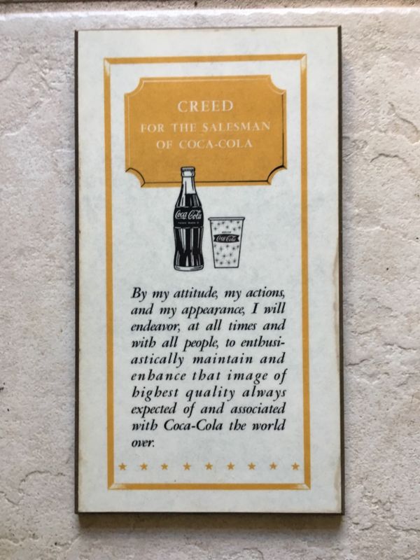 Coca-Cola Coke Antique Vintage Salesman Creed Office Sign 1950s-1960s Very Rare