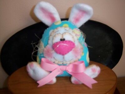 PRIMITIVE WHIMSICAL FOLK ART WHITE EASTER EGG RABBIT SHELF SITTER TUCK