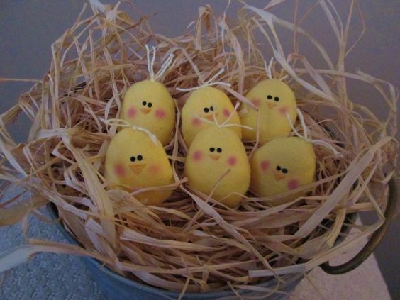 Title (ebay affiliate link): 6 Handmade Primitive Easter Spring Mini Chicks Ornies Tucks Bowl Fillers