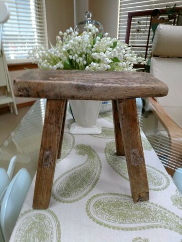Title (ebay affiliate link): Cute Small Antique Primitive Wooden Stool Old Vintage Nice Patina Barn Display