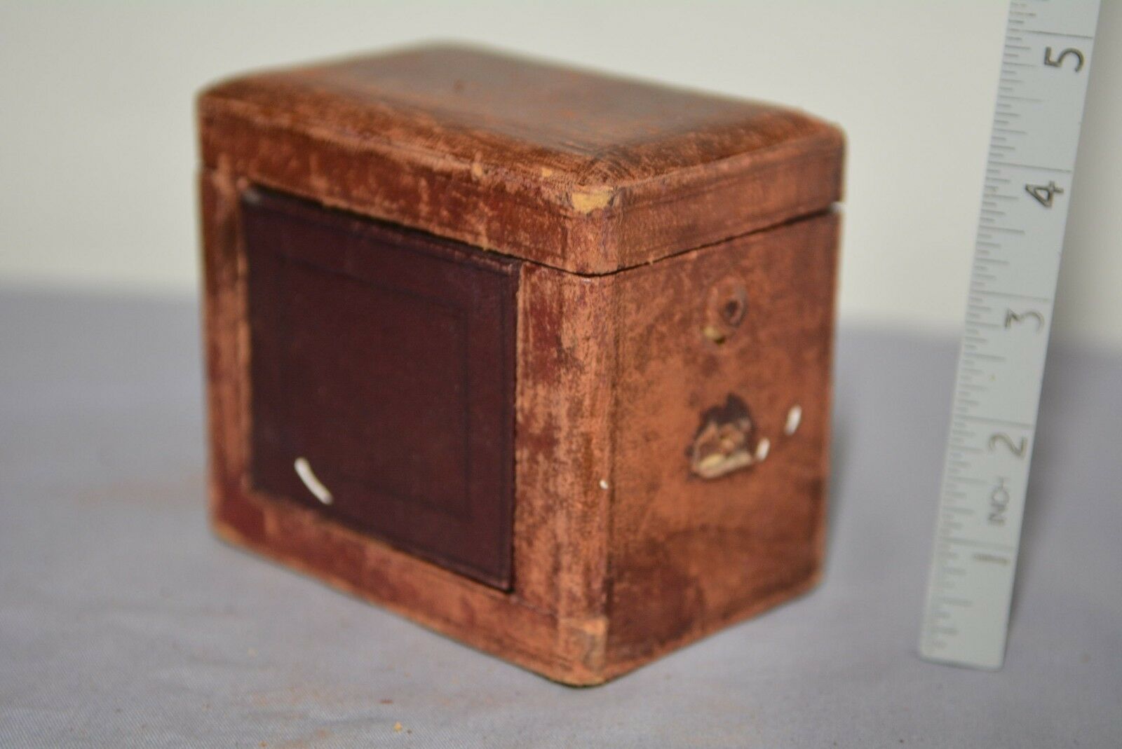 Antique, VICTORIAN CARRIAGE CLOCK SMALL travel case - Tooled leather. H 10cm
