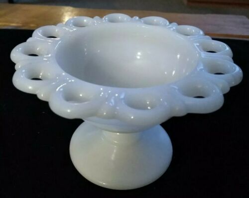 Title (ebay affiliate link): Vtg White Milk Glass Laced Edge Pedestal Footed Compote Candy Dish 3.25"T x 7"D