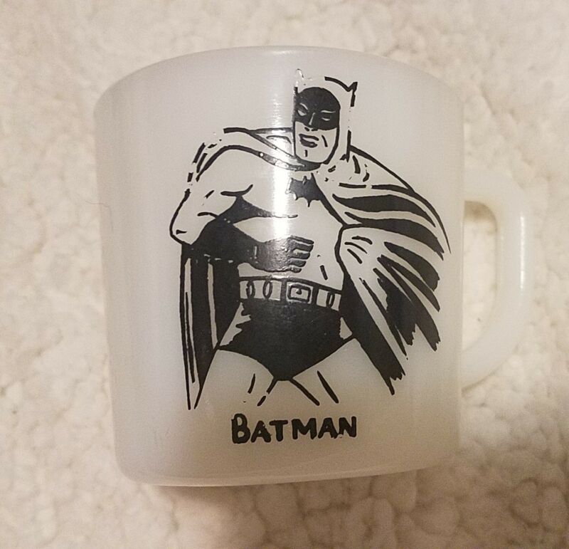 Title (ebay affiliate link): Vintage 1966 BATMAN White Milk Glass Coffee Mug Cup Westfield Heat Proof Nice