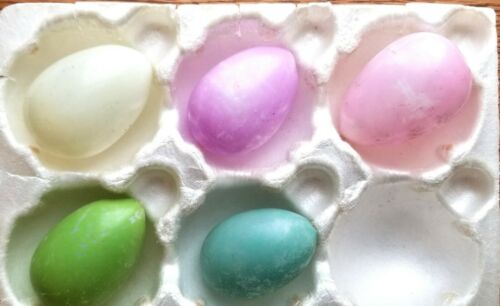 Five colored Milk Glass Eggs. 1920s German. Wonderful for Easter Decor.