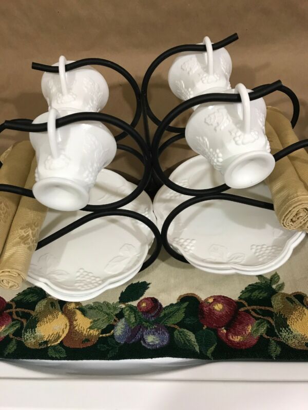 Set of 4 Vintage Milk Glass Indiana/Colony Harvest Grape Luncheon Plates/Cups