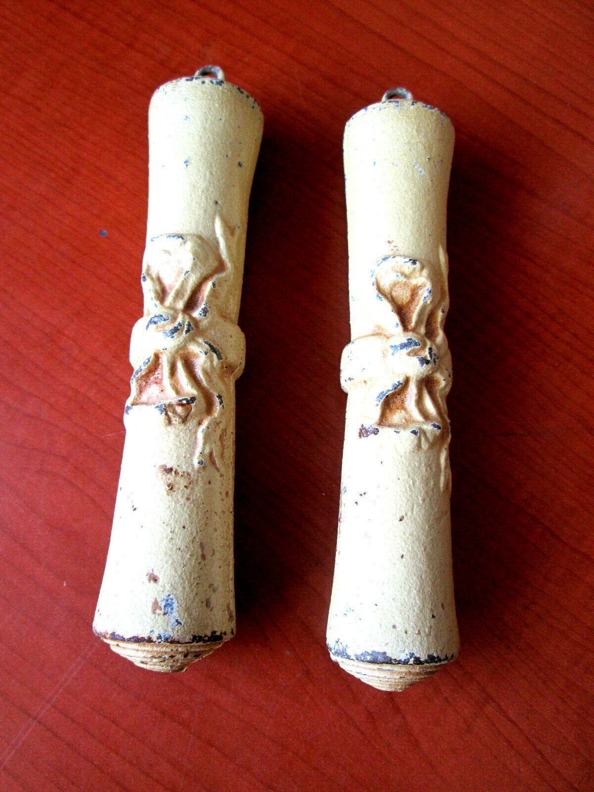 Title (ebay affiliate link): Set of 2 Antique Cast Iron Scroll Clock Weights (368B)