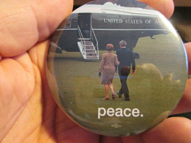 Title (ebay affiliate link): 3 inch dia pin, 2008 election. farewell ride for George W Bush & wife. ''PEACE''