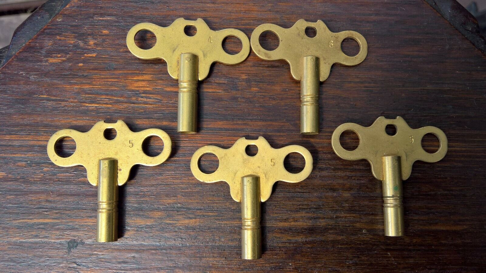 "5" x VINTAGE ORIGINAL BRASS WINDING CLOCK SHIPS BELL? CLOCK KEYS #4, #5 & #6!