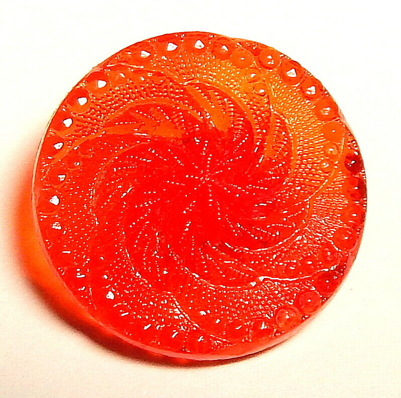 Title (ebay affiliate link): VINTAGE 1930''S TRANSPARENT AMBERINA DEPRESSION GLASS BUTTON w/PINWHEEL PATTERN