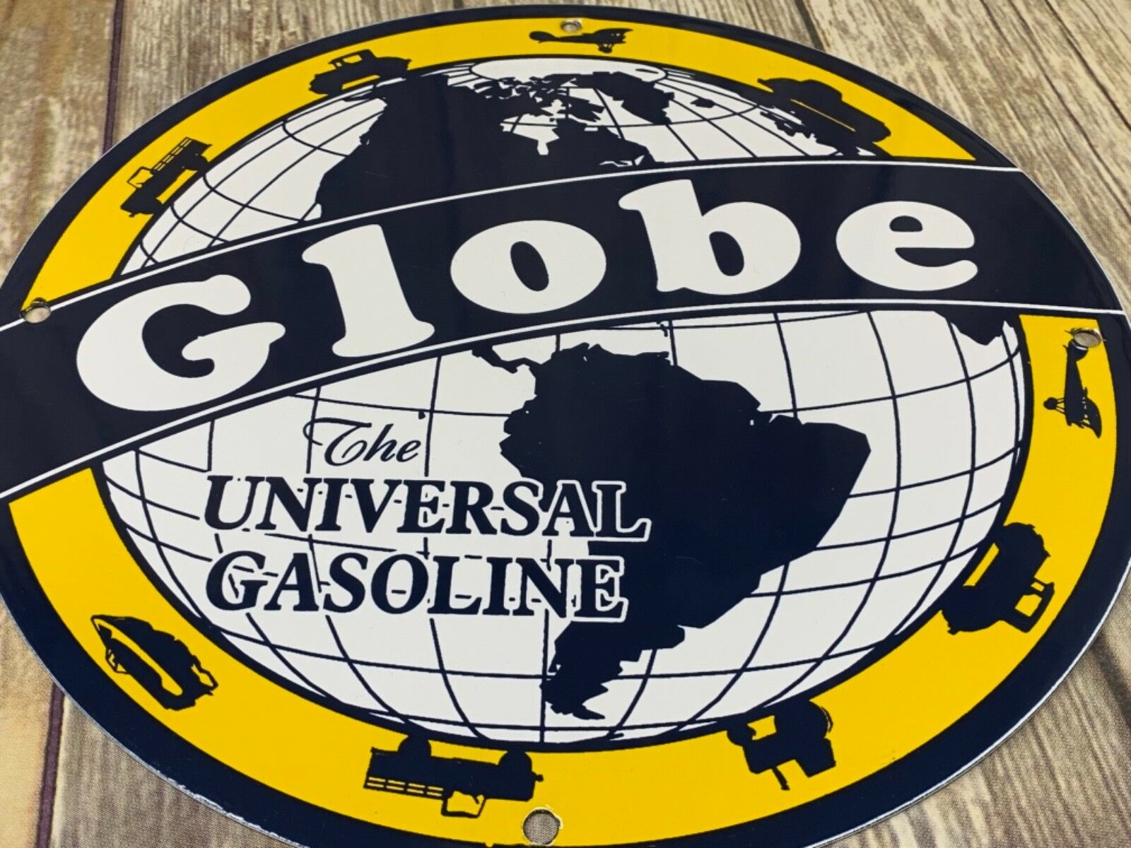 VINTAGE GLOBE "THE UNIVERSAL GASOLINE" PORCELAIN 12" SIGN GAS & OIL PUMP PLATE