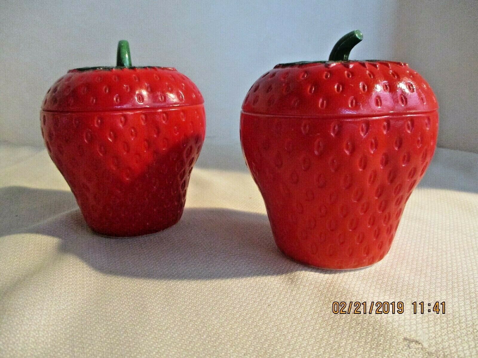 Title (ebay affiliate link): 2 Vintage Strawberry Jam/Jelly Jars with Lids - Painted Milk Glass (Hazel Atlas)